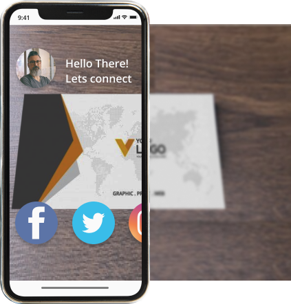 Transform your business card into a visual treat with an AR card. Showcase your successful projects, company premises, client testimonials or personal achievements in a creative and interactive way. With the AR card license, display images on the front and back of the card, and access predefined actions such as Facebook, Instagram, or LinkedIn buttons. Impress your clients with videos, animations, and 360-degree panoramas, making a lasting impact. Stand out in the competitive world of business by making an immediate positive impression.